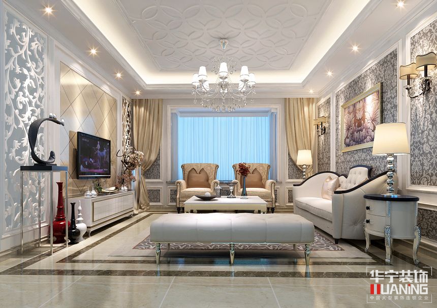 歐式風(fēng)格采用白色、淡色為主,以淡色的色調(diào)對(duì)比跳躍的沙發(fā)靠墊顏色。家具主要特色是強(qiáng)調(diào)力度、變化和動(dòng)感,沙發(fā)華麗的布面與精致的雕刻相互配合,把高貴的造型與地面的舖飾溶為一體。 門的造型設(shè)計(jì),包括房間的門和各種柜門,既要突出凹凸感,又要有優(yōu)美的弧線,兩種造型相映成趣,風(fēng)情萬種