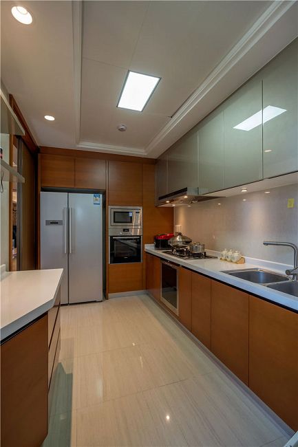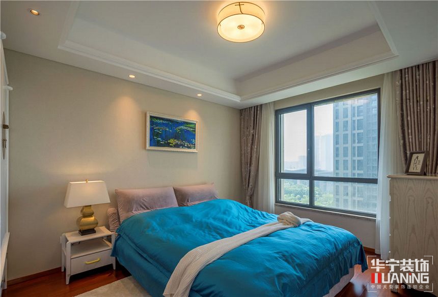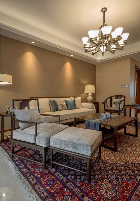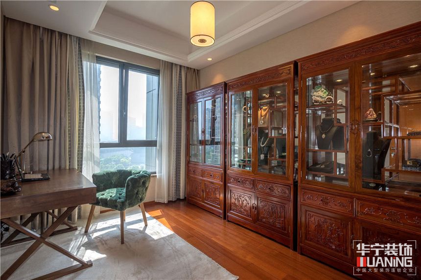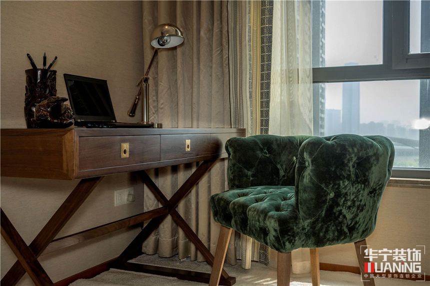 本案全部采用天然胡桃木實木制作家具,結(jié)合中式韻味和棉麻布料,定制了專屬她的古典和現(xiàn)代、舒適與文化并存的家具。我們將中式元素運用在現(xiàn)代材質(zhì)上,從真絲墻紙到布藝,從定制真絲手繪畫到銅制的燈具照明,從洋洋灑灑的透光百葉到手工波斯地毯......其實,軟裝設(shè)計看似是錦上添花,其實更是一種生活品質(zhì)