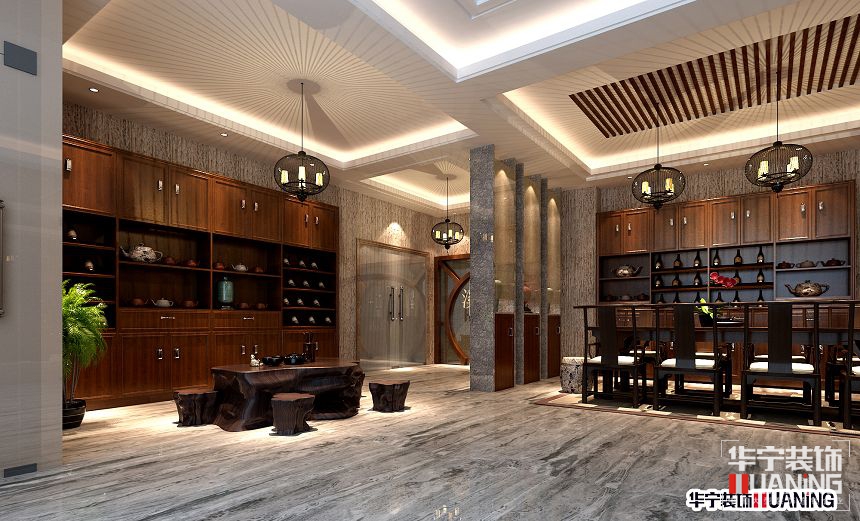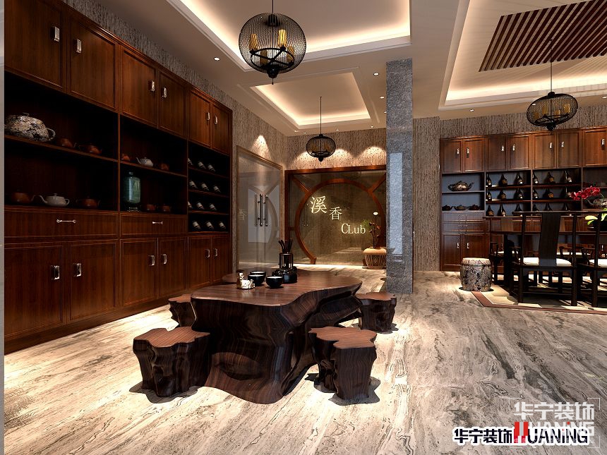 這家茶酒會(huì)所的擺設(shè)及水曲柳面板的顏色讓人無(wú)法忽視的姿態(tài)在這個(gè)空間里面獨(dú)占一方。