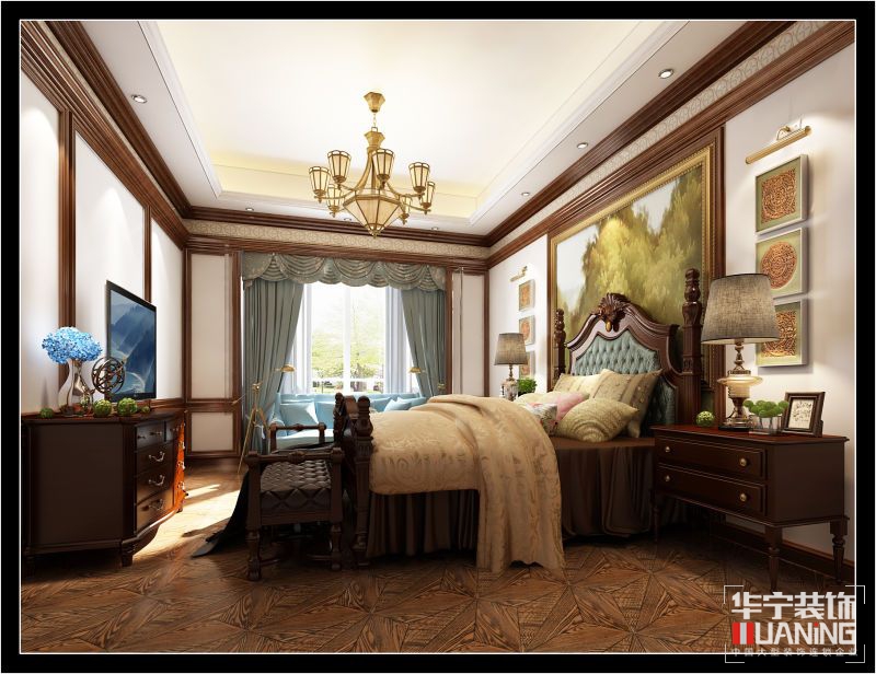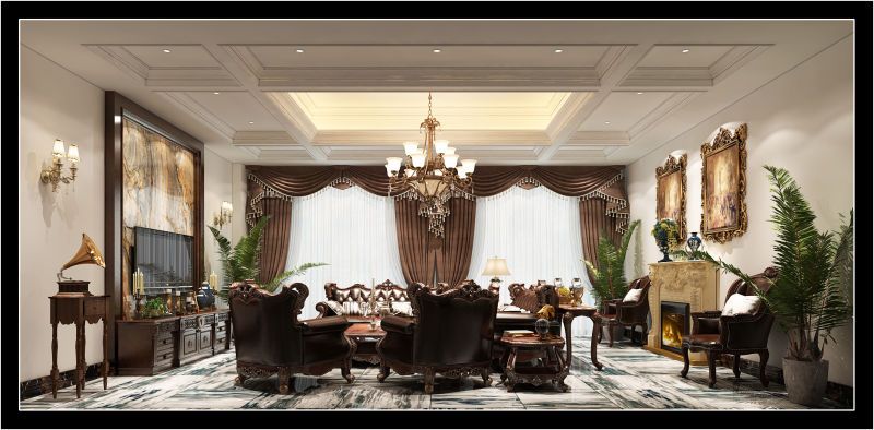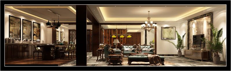 本案為美式風(fēng)格,帶有古典主義高貴、莊嚴(yán)的文化特質(zhì)。比奢華而言更注重突出體現(xiàn)家居的文化性和優(yōu)雅氣質(zhì)。層層遞進(jìn)的色彩與造型,穩(wěn)重而充滿品味,草綠色印花布藝的點(diǎn)綴,讓環(huán)境無(wú)意間增添了更多的優(yōu)雅元素。家具在形式上保留了古典主義中的經(jīng)典造型。但并不過(guò)于繁復(fù)和隆重,設(shè)計(jì)的重點(diǎn)是強(qiáng)調(diào)優(yōu)雅的雕刻和舒適的設(shè)計(jì)。在受現(xiàn)代審美影響下,造型上更注重裝飾的實(shí)用性和色調(diào)的和諧性。