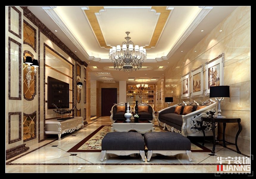 本案采用從簡單到繁雜、從整體到局部,精雕細(xì)琢,鑲花刻 金都給人一絲不茍的印象。一方面保留了材質(zhì)、色彩的大 致風(fēng)格,仍然可以很強(qiáng)烈地感受傳統(tǒng)的歷史痕跡與渾厚的 文化底蘊(yùn),同時又摒棄了過于復(fù)雜的肌理和裝飾,簡化了線條。但綜合上而言就是結(jié)構(gòu)上的對稱性,裝修材料多以大理石為主。然后要考慮到日常生活的功能,沒有太多藝術(shù)化、太鄉(xiāng)村化,多一些實用性功能。而休閑性質(zhì)的,則可以相對多元化一點,營造一種與日常居家不同的感覺。