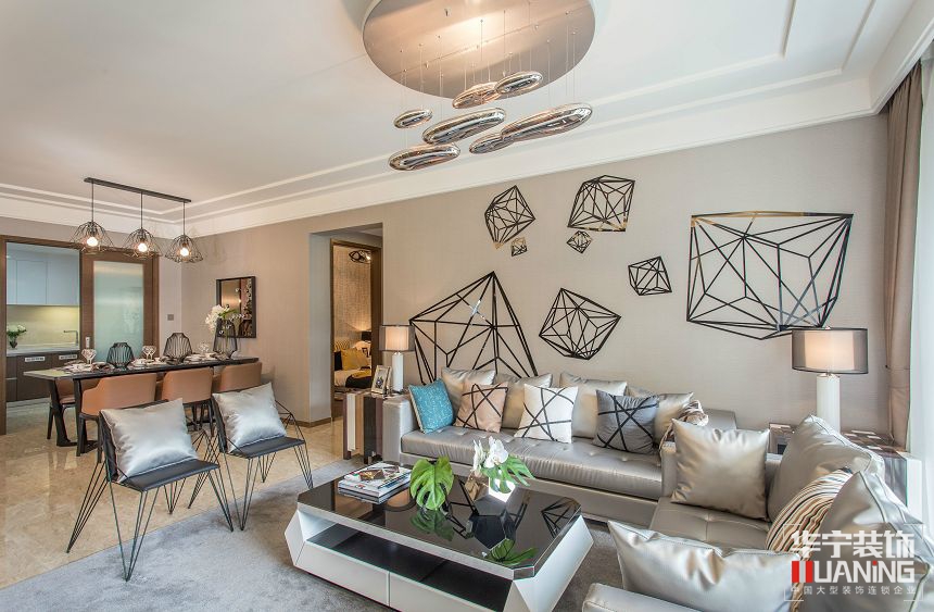 本案是一對年輕夫婦的婚房,雙方恩愛非常,又都有強(qiáng)烈的性格色彩。整體的色調(diào)為現(xiàn)代感較強(qiáng)的亮色系,以中性的色彩帶出煥然一新的視覺效果。整體氛圍看得出業(yè)主的生活品味,以及對軟件、飾品的接受度業(yè)主非常明白自己需要什么。所以在挑選家俱及軟件非常的用心,部分燈具家具飾品都是同一個(gè)系列。:家具的選擇也以現(xiàn)代感為主,再輔以獨(dú)特的配飾,營造出簡約卻質(zhì)感的空間氛圍,保證充分采光。人生最美,不過是憑欄賞月光,安守清寂,不染風(fēng)塵;與陽光相擁,與光陰說禪。