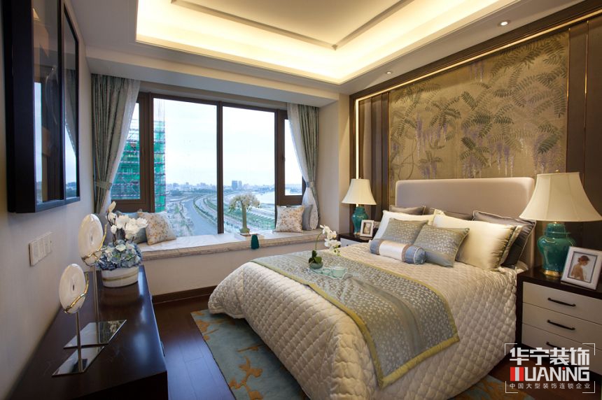 主臥室與次臥室設計均顯得時尚、溫馨,使舒適的臥室氛圍中漂蕩著中式的浪漫情調。