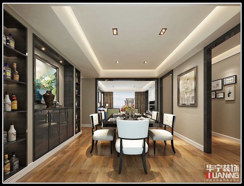 本案以“黑、白、灰”三色為基調,整個色彩彰顯簡潔、明快,簡約而不失奢華。造型上以干練的直線為主,去除繁冗的曲線。視覺上給人一種硬朗的感覺。
