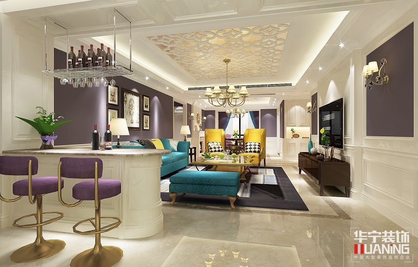 步入客廳餐廳,立體感的木質(zhì)護(hù)墻裝飾、豐富的顏色、精美跳躍的家具、精致的細(xì)節(jié)、多彩的墻紙、原味的壁爐、簡(jiǎn)單的吧臺(tái)等,都是對(duì)本案風(fēng)格的完美演繹。