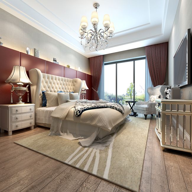 通過和業(yè)主的交流,業(yè)主是即將結(jié)婚的新人,對(duì)功能的需求強(qiáng)。選擇簡(jiǎn)約風(fēng)格,整體感覺比較穩(wěn)重,以白色系為主調(diào)。臥室選擇一點(diǎn)喜慶紅色的顏色,這樣既不與整體風(fēng)格相沖突,又給人眼前一亮的感覺。因?yàn)楸景缚臻g比例面積比較大,為了既不使房間顯得空曠又能夠與整個(gè)設(shè)計(jì)相呼應(yīng),所以在選擇顏色方面主色系是采用暖色系家具作為點(diǎn)綴。淡雅的米色系既能使房間感覺舒適、溫馨,也能讓其充滿生活和活力,再搭配利落的裝飾柜和精致的吊燈,多了幾分雅趣。