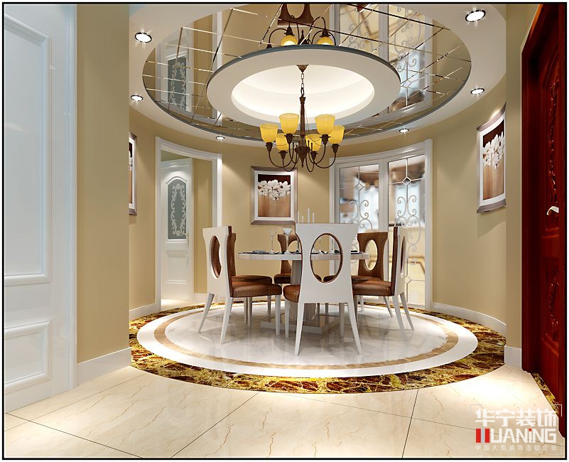 此方案的風(fēng)格傾向定位為簡歐設(shè)計風(fēng)格。本套戶型原為經(jīng)典的三房兩廳居室,戶型比較方正,五口人居住,本設(shè)計在布局上增加了一個大衣帽間,原本進(jìn)門比較緊湊的餐廳設(shè)計成大膽的圓形餐廳,為了保證空間的開闊性和通透性,空間裝飾多采用簡潔硬朗的直線條。直線裝飾在空間中的使用,不僅反映出人追求簡單生活的居住要求,更富現(xiàn)代歐式感的設(shè)計風(fēng)格 。