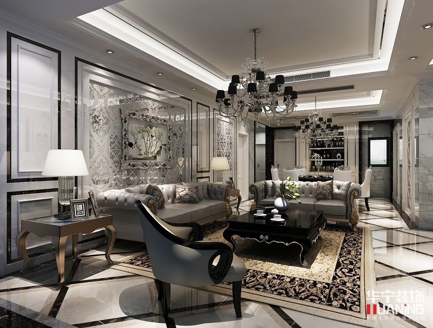 本案以后現(xiàn)代加簡(jiǎn)歐風(fēng)格渾然天成,呈現(xiàn)出另一種別具一格的風(fēng)格。體現(xiàn)主人的超前的審美觀,又不失簡(jiǎn)歐風(fēng)格的渾厚感。本案大量采用了后現(xiàn)代中的鏡面、鈦金等亮度較高的材質(zhì)。又用到了實(shí)木線條,實(shí)木線條既體現(xiàn)了歐式的韻味,又和鈦金線條體現(xiàn)出不同的韻味。