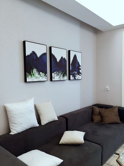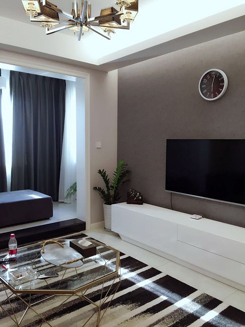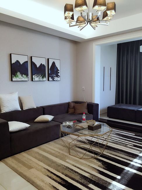 本案作品將極簡的現(xiàn)代風加入了摩登前衛(wèi)的黑白灰色調(diào),無疑給整個空間注入藝術(shù)氣息,設(shè)計師在材料的選擇和細節(jié)色彩的配比上更加注重各元素之間細膩微妙的變化和對比,如明暗深淺、亦剛亦柔,如同一位藝術(shù)家在多面體的空間內(nèi)創(chuàng)作一幅抽象畫,同時在家具配置上,純黑色的布藝家具倍感時尚,將舒適與美觀并存的享受,同時灰色又是黑白質(zhì)檢的過渡色,和偕自然,把黑與白強烈反差緩沖并融合,營造出平靜心境的家居氛圍。