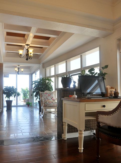 本案采用簡約美式風格,雖然沒有歐式的精致,也沒有地中海的風情,但是由于美式?jīng)]有太多造作的裝飾,不經(jīng)意間傳遞出人們所追求的自由自在,隨意不羈的生活方式。浪漫溫馨,給人帶來一種清新、安靜之美。優(yōu)質(zhì)的設計感使質(zhì)感蔓延、自然純凈。淡雅的藍、純凈的象牙白作為空間色系的主調(diào),以簡約精致的結構為基底的一個空間。空間的色調(diào)搭配顯得主人有那么一絲絲俏皮的新意。然而空間中選用了看似很清雅的色彩構成語言去碰撞紅橡古典家具精致氛圍,這兩種截然不同的方式融合在了一起,使人感覺到時間從肩頭劃過。冷暖色調(diào)交映出主人的自由氣質(zhì),帶來溫潤和暖的美意。淡淡的書墨香混著陽光的味道,這里是屬于自己的一番天地,安顧當下,不假外求。