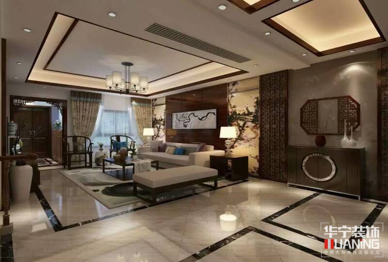 新中式裝修并不是傳統(tǒng)文化的復古裝修,而是在現(xiàn)代的裝修風格中融入古典元素。中式家具和飾品或顏色較深,或非常艷麗,安排它們時需要對空間的整體色彩進行通盤考慮。中式裝修講究的是“原汁原味”和非常自然和諧的搭配。色彩以深色沉穩(wěn)為主。因中式家具色彩一般比較深,這樣整個居室色彩才能協(xié)調(diào)??臻g上講究層次,多用隔窗、屏風來分割。天花以木條相交成方格形,上覆木板,也可做簡單的環(huán)形的燈池吊頂,用實木做框,層次清晰,漆成花梨木色。