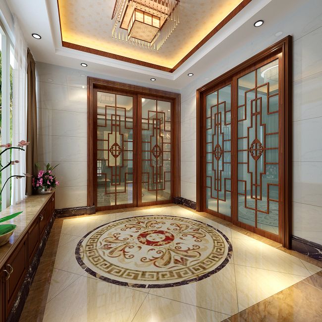 本案是典型的新中式風(fēng)格客廳,典雅且韻味十足。山水壁畫裝飾的沙發(fā)背景墻與大理石的電視背景墻相呼應(yīng),給人大氣舒適的感覺。實木家具的沙發(fā)組合即是古典與現(xiàn)代的完美結(jié)合,傳統(tǒng)又不失時尚。古典的吸頂燈為整個空間增加亮點,整體色調(diào)為暖色,體現(xiàn)出家的溫暖,貴氣舒適。