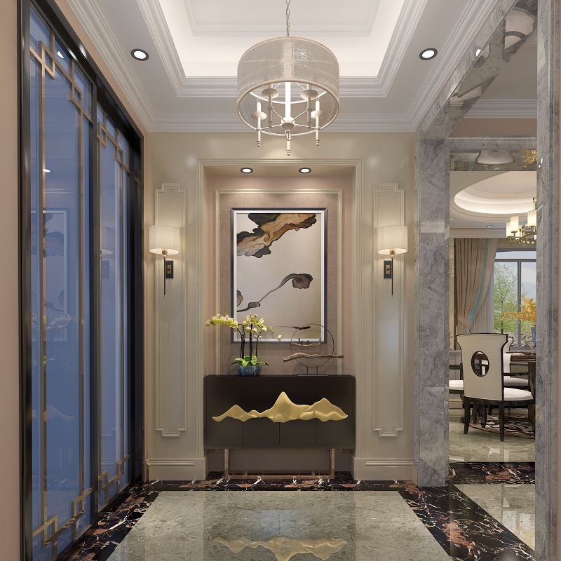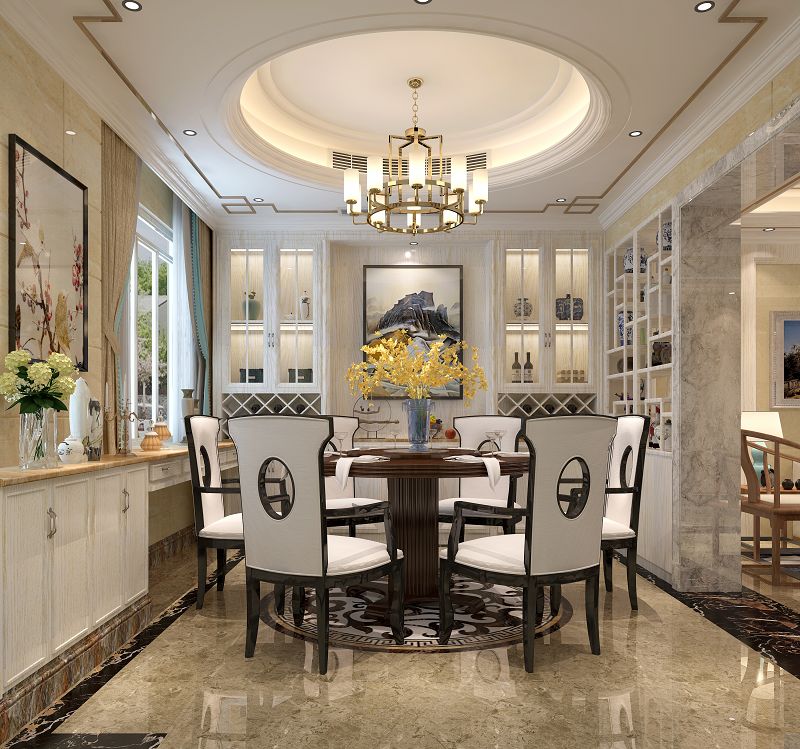 本案從功能布局開(kāi)始簡(jiǎn)潔而不失韻味、穩(wěn)重又不失大氣,選型在中式與歐式上做簡(jiǎn)化,抽其中式與歐式繁雜造型以新的材質(zhì)去演繹,歐式線條和中式木紋飾面的結(jié)合冷暖搭配延續(xù)了中式的沉穩(wěn)與歐式的奢華。在視覺(jué)回歸到最舒適的干凈色調(diào),家中以大米黃色為主軸,佐以白色、暖色調(diào),讓家具、藝術(shù)畫(huà)作、窗外景致、部分墻面多些色彩感度在空間發(fā)聲,就像藝?yán)让佬g(shù)館般,去除太復(fù)雜的色彩,產(chǎn)生寧?kù)o舒適感受。