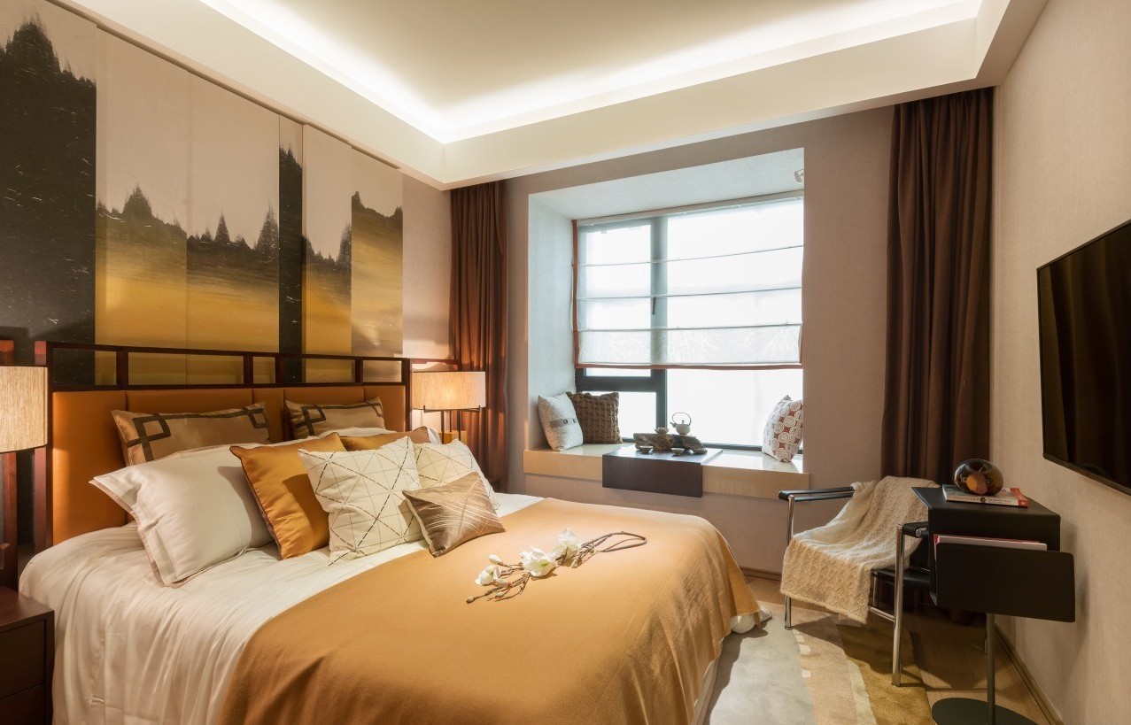 設(shè)計(jì)理念:整體裝修為現(xiàn)代風(fēng)格,墻面以白色為主,家具帶有現(xiàn)代中式,燈光以暖色調(diào)給人帶來(lái)前衛(wèi)、不受拘束的感,將浪漫情懷與現(xiàn)代人對(duì)生活的需求相結(jié)合