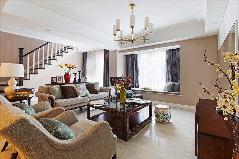 傳統(tǒng)的穩(wěn)重,也現(xiàn)代的摩登時尚,兩者之間的相互交融,讓整個空間進(jìn)門就帶給人驚喜,美式的線條結(jié)合現(xiàn)代冷靜的淺咖色系的大面。將自由不羈的傳統(tǒng)美式與簡潔大方的現(xiàn)代設(shè)計(jì)完美融合,也是本案的另一大亮點(diǎn)所在。