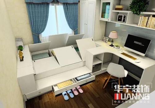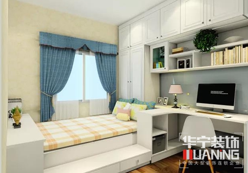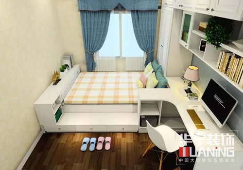 既是書房也是次臥,特意用階梯柜將榻榻米抬高,睡上去也能更好地避免地面濕氣;衣柜+書桌+榻榻米連體式的設(shè)計(jì),以免家具落灰難以打掃,用起來1件頂3件,省心又舒心。