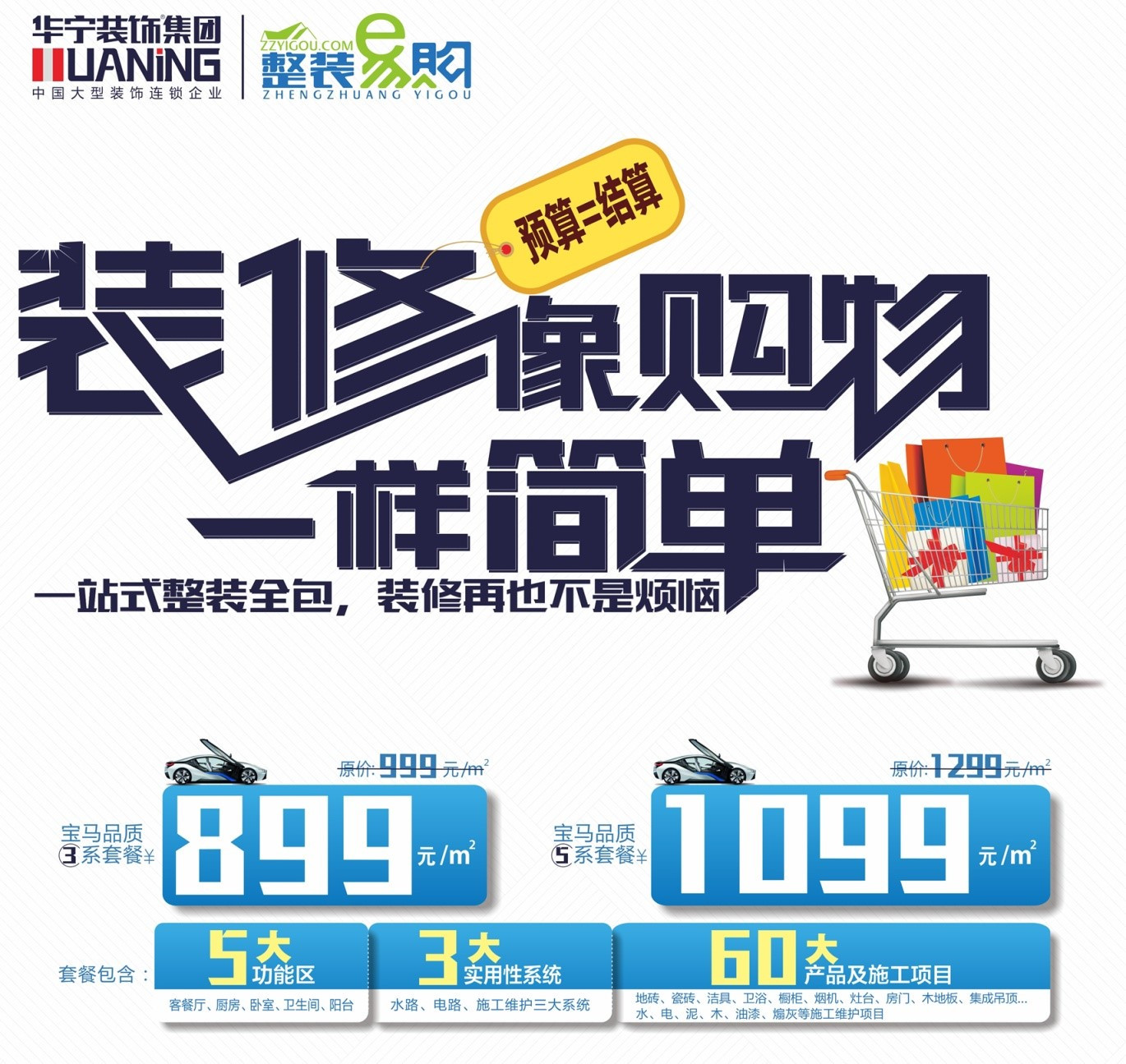 裝修黃金季來(lái)襲,作為年度熱點(diǎn)的315更是聚焦了所有家居消費(fèi)者的視線。華寧裝飾旗下品牌整裝易購(gòu)借此機(jī)會(huì),感謝廣大消費(fèi)者對(duì)華寧裝飾品牌的大力支持,于2016年3月15日-4月15日舉辦主題為“裝修像購(gòu)物一樣簡(jiǎn)單 (結(jié)算=預(yù)算)”大型活動(dòng),為配合此次活動(dòng),在寶馬3/5系套餐基礎(chǔ)上,推出簽單就送禮,趣味抽獎(jiǎng),訂金贈(zèng)送電器等活動(dòng)。