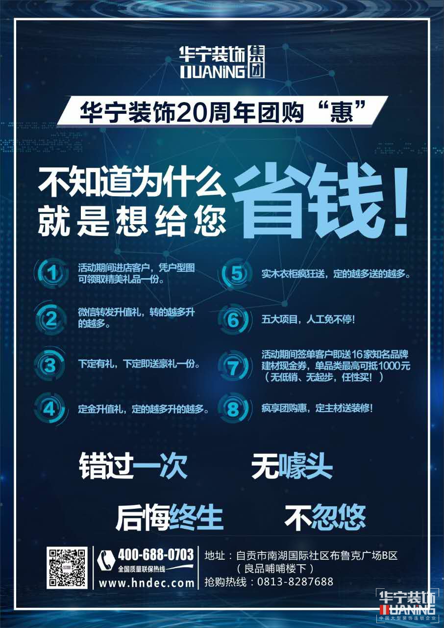 我為華寧裝飾20年團購“惠”代言,20周年團購“惠”,不知為什么就是想給您省錢,錯過一次,后悔終生,無噱頭,不忽悠!