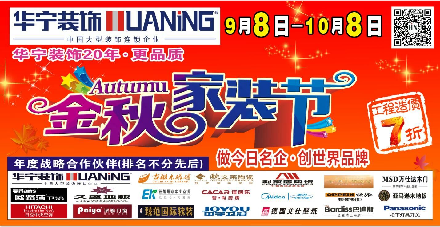 本次活動(dòng)得到了二十多家一線(xiàn)品牌商家的鼎力支持 !可以預(yù)見(jiàn), 本次“華寧裝飾20年更品質(zhì)·金秋家裝節(jié)”,必將在柳州地區(qū)家居行業(yè)掀起一股熱量,為廣大家裝修需求客戶(hù)提供一場(chǎng)家裝盛宴。