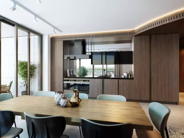 異型木鑲板,旋轉(zhuǎn)門和天然石材