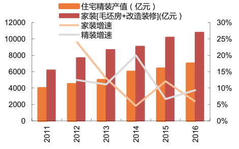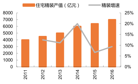 16 年住宅精裝修總產(chǎn)值增速回升