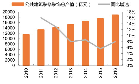 16 年公共建筑裝修總產(chǎn)值同比小幅回升