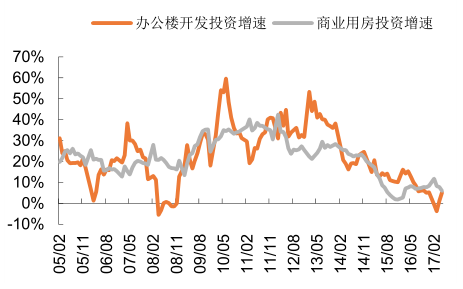 辦公樓與商業(yè)用房投資增速長(zhǎng)期呈下滑趨勢(shì)