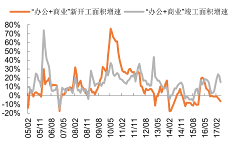 商業(yè)地產(chǎn)新開(kāi)工/ 竣工面積同比增速持續(xù)下滑
