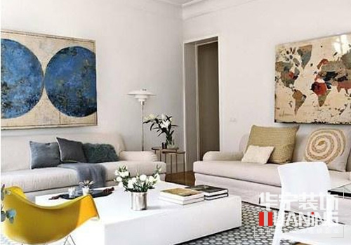 假如你是一個時尚達人,喜愛鮮艷炫目的顏色,也喜歡自己的客廳多一點色彩,那么在布置客廳背景墻時,就可以選擇時尚海報式的墻面裝飾畫,大一點醒目一點才會更容易裝出感覺。