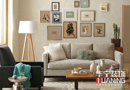 如果想要打造復(fù)古風(fēng)格的客廳,那么墻面當(dāng)時也要一起配合起來。你就要適當(dāng)?shù)厝ヌ砸恍┳雠f處理的裝飾畫了,大幅的世界地圖、海洋大洲碎片圖等都是很好的裝飾。