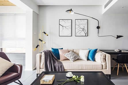 3人坐沙發(fā)與單人坐沙發(fā)的款式可以協(xié)調(diào)一致,也可完全不同。比如3人坐選擇布藝沙發(fā),而單人坐則為皮質(zhì)沙發(fā),或者單人沙發(fā)干脆擺放中式古典風(fēng)格的木制椅。不過(guò)它們之間的距離不要過(guò)大,以免造成交談時(shí)的不便。