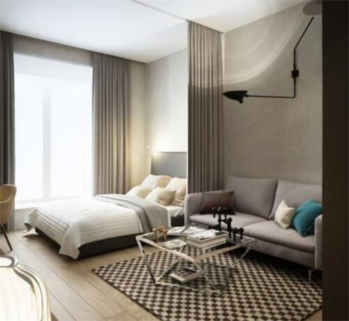 如果你想讓臥室和客廳分隔開的話,我們可以在購買窗簾時多買一塊,將窗簾安裝在客廳和臥室中間。與其他隔斷做法相比,它較為經(jīng)濟(jì)實惠、操作便捷,并且它是一種軟性隔斷物,不會讓居室顯得呆板生硬,可以保證臥室充足的采光,也不會占據(jù)太多空間位置。
