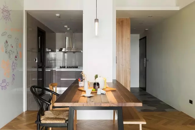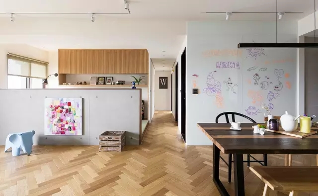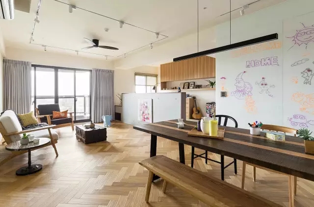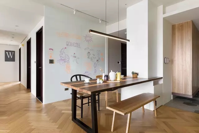背景的白板是給孩子準(zhǔn)備的繪畫墻