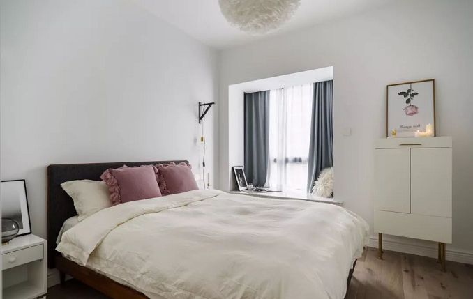 ▲臥室簡單干凈舒服,大面積白色系為主,搭配18年流行色系高級粉的抱枕和裝飾畫,溫馨又有情調(diào)。