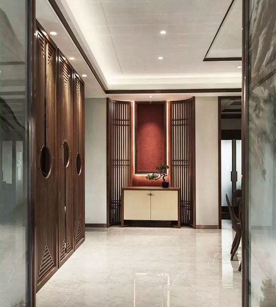 木質(zhì)鏤空類隔斷可謂是中式的靈魂,常用的有回字紋、冰裂紋等。具有豐富的層次感,將中式風(fēng)格中的典雅高貴、深厚文化底蘊(yùn)演繹的淋漓盡致。