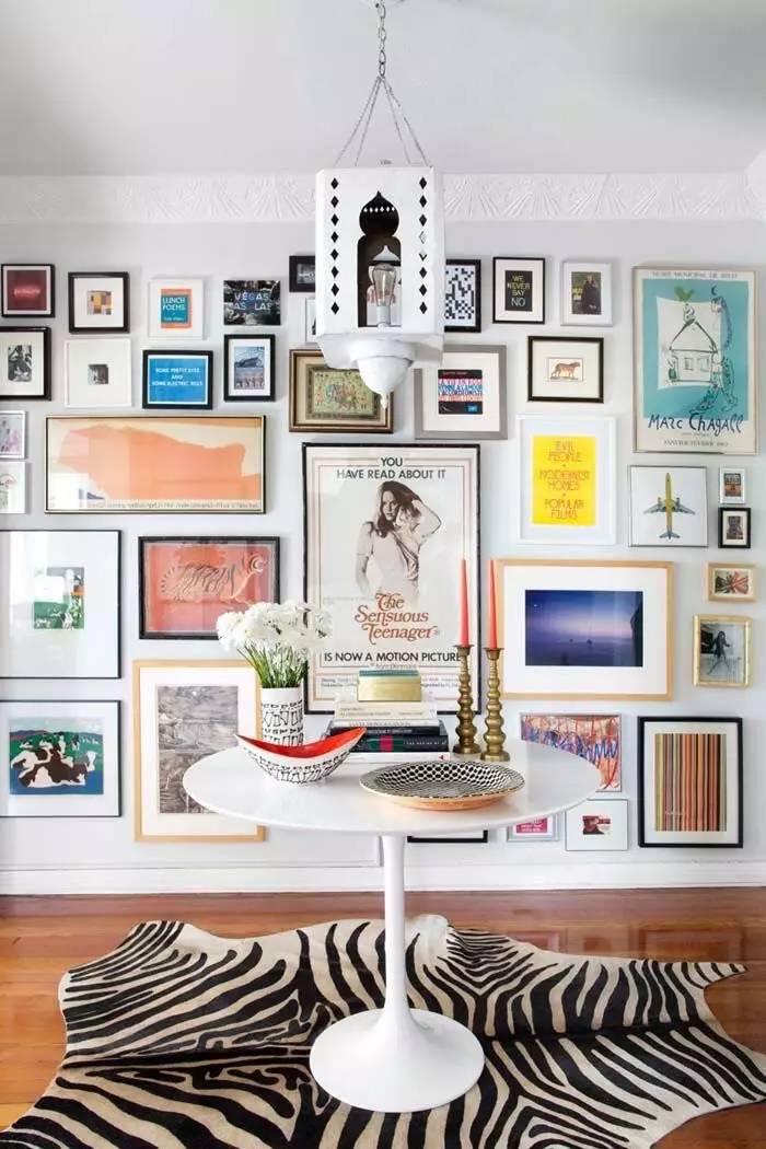 一整面墻的畫,相框格局很隨意