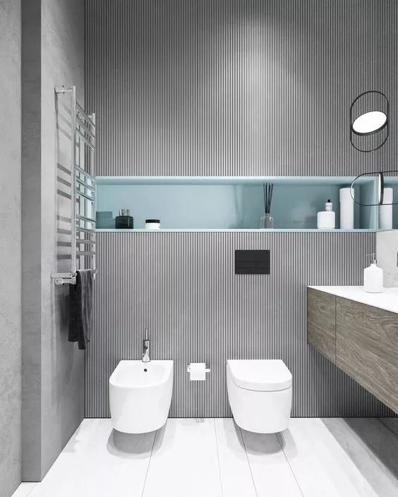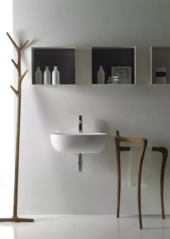 壁龕在衛(wèi)浴間運(yùn)用尤其多,洗浴用品有了容身之處,又省去了收納用具。設(shè)計(jì)時(shí)造型上還可以與墻面融合在一起,作為收納架or收納板,鐵的怕生銹,木的怕掉色,只有壁龕才能拯救潮濕的衛(wèi)生間。