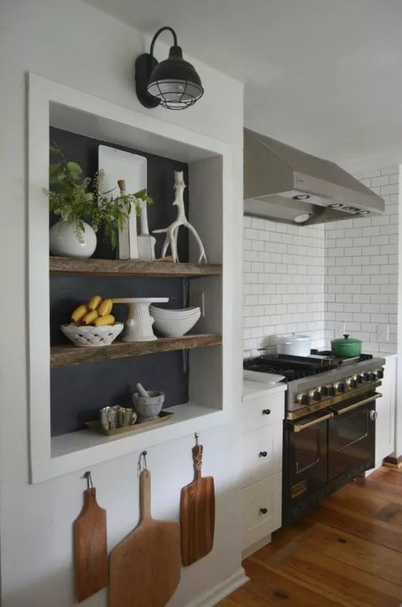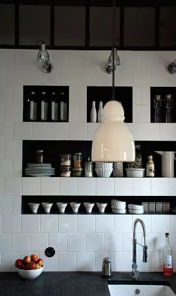 相比之下在廚房開壁龕的人大概相對(duì)較少,廚房講究的是方便、美觀、實(shí)用、設(shè)計(jì)一個(gè)壁龕,放一些碗盤子和各種瓶瓶罐罐還是很方便的。