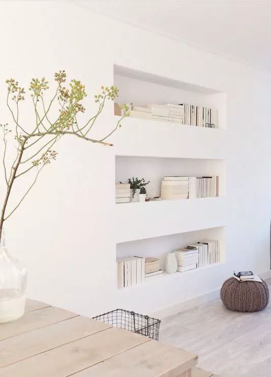 ▲利用墻壁的厚度打造書架,是常見的做法,遠(yuǎn)看是和墻壁融為一體的裝飾。
