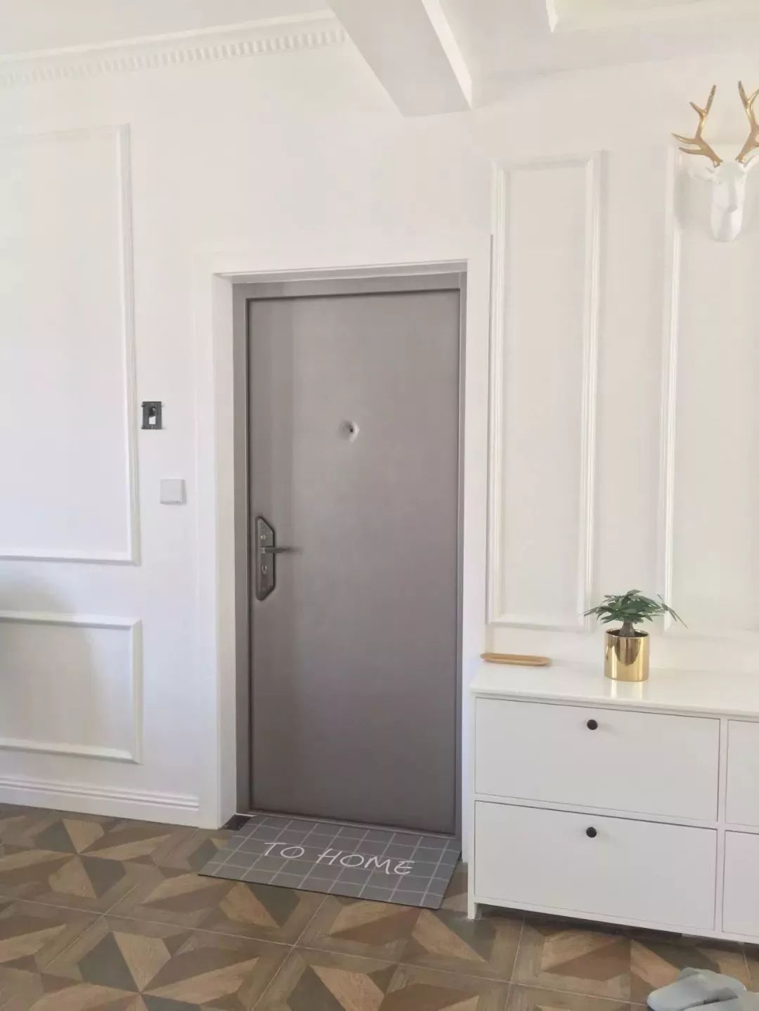 3、如果對(duì)風(fēng)格搭配很在意,也可以考慮把入戶門換成跟整體風(fēng)格搭配的,這樣一回家就看到處處都順眼的畫面,很輕松恣意。