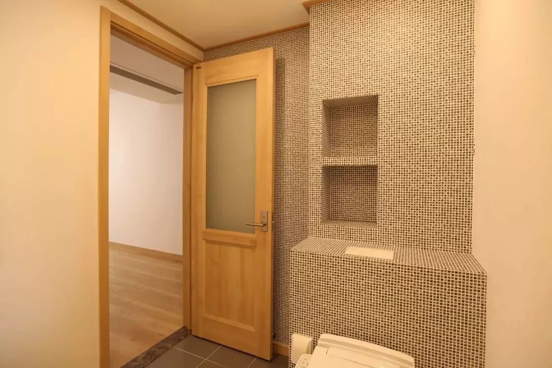 11、衛(wèi)生間選擇木質(zhì)門比較有親和力,看上去很有檔次,但是最好還是干濕分離,不然木質(zhì)門怕濕容易壞。
