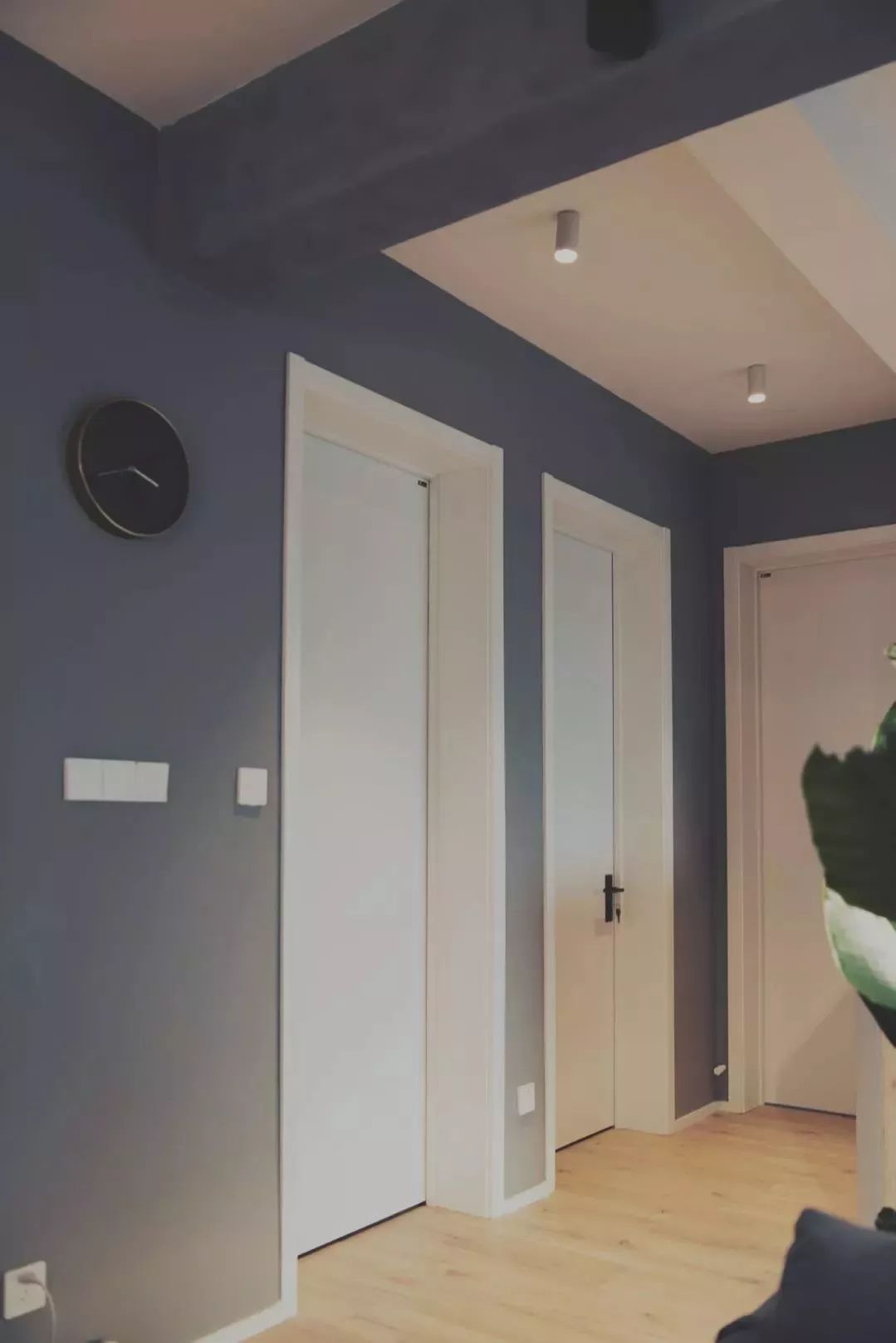 6、室內(nèi)的門的顏色與墻面顏色進(jìn)行反差搭配,灰色的墻面搭配白色的門,顯得更有層次感。