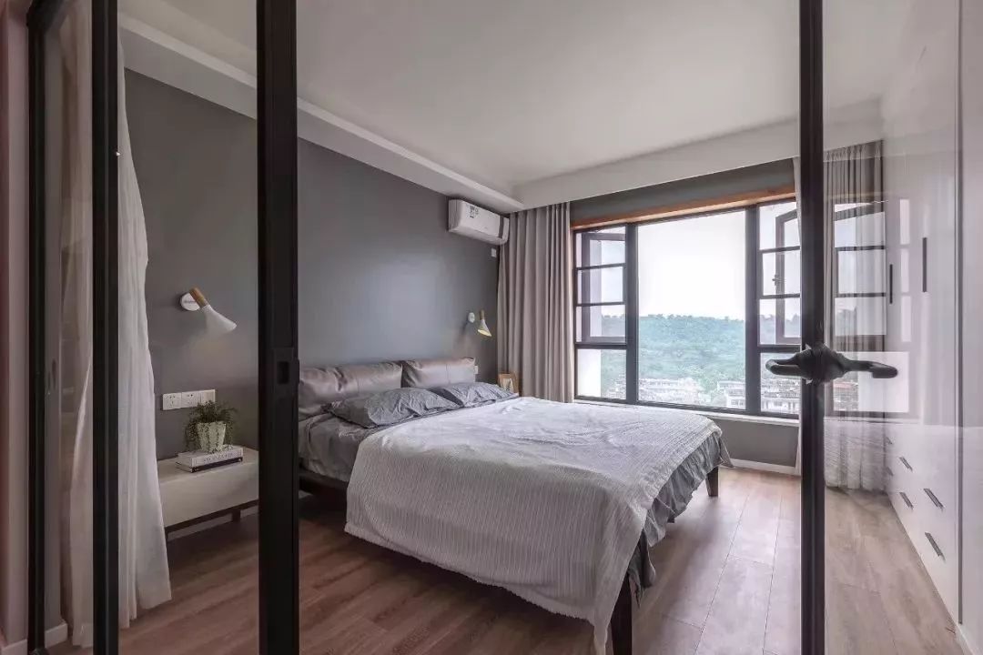 次臥的風(fēng)格跟主臥差不多,有一個(gè)大的窗戶(hù),采光充足。