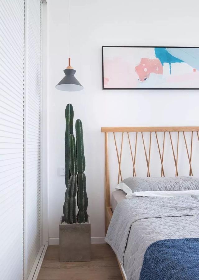 臥室的裝修布置,通常以寬敞舒適為主,所以若這里有個小陽臺的話,那么最好的設(shè)計就是把陽臺封起來,然后拆下推拉,打通陽臺的臥室,會顯得更加簡潔舒適。