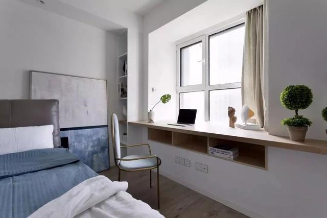作為當代獨立的年輕人,他們喜歡生活也熱愛工作,在臥室里面增加書桌,也正是他們喜歡做的事,在空間允許的情況下,我們需要的不僅僅是一張書桌,而是一個獨立舒適的小書房。