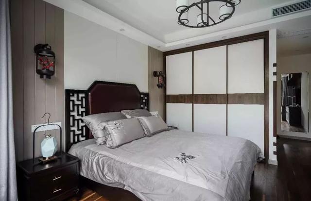 以上介紹的都是些稍微寬敞的臥室,對于那些不大不小剛剛好能擺下衣柜與床的臥室,最簡單的辦法就是:讓床頭盡量離房門遠點,同時避開窗戶又能滿足裝衣柜的設(shè)計。