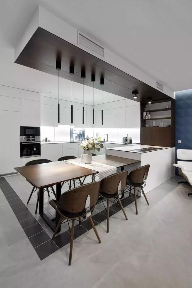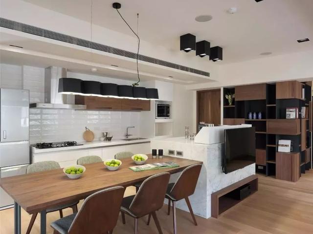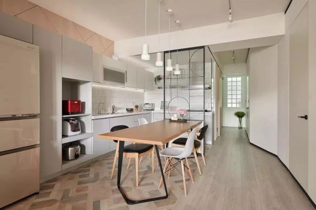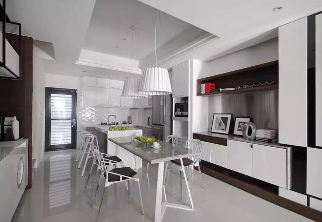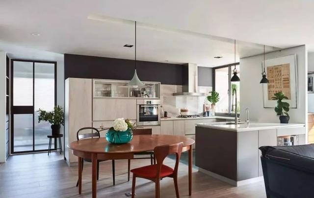 把廚房與餐廳打通一體來規(guī)劃設(shè)計(jì),這會讓餐廳廚房都顯得更加寬敞舒適,適合大多數(shù)人家的戶型情況。