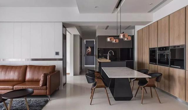 廚房是個容易雜亂的空間,做成開放式的話,意味著你需要對收納、清潔都有著明確的規(guī)劃,否則會把雜亂的視覺帶入到客餐廳。