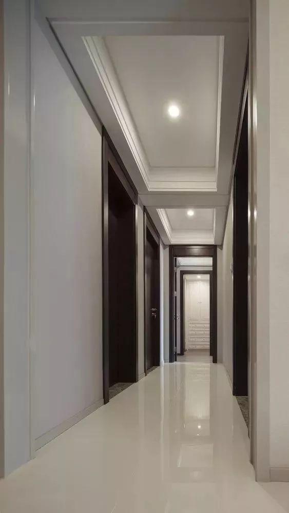 對(duì)走廊玄關(guān)這樣的小空間而言,直接把整個(gè)空間都吊平頂,并在吊頂里面嵌入筒燈照明,這樣簡(jiǎn)潔大方的設(shè)計(jì),彰顯著獨(dú)特優(yōu)雅的檔次。