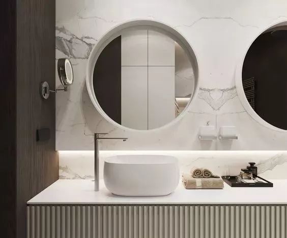 借助鏡子本身的造型或功能,也可以為衛(wèi)浴空間營造新的亮點。